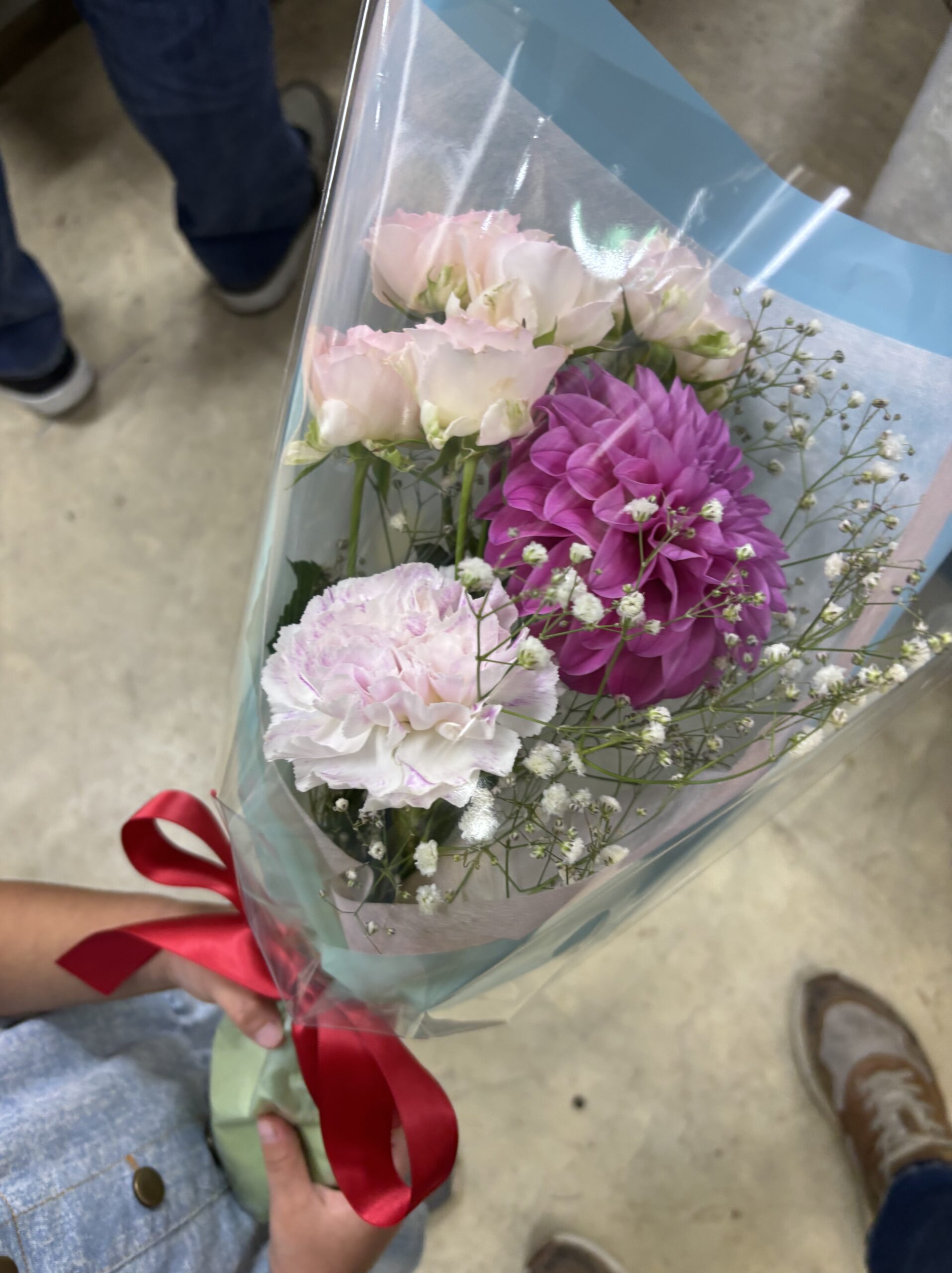 オキちゃんは女のコなので、ピンクの可愛らしい花束になりました\(^o^)/